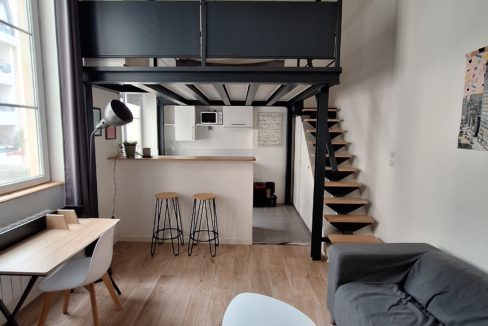 Situé Rue du Pont Dorieux. Studio au rez de chaussé sur rue. Il se compose d’une pièce principale avec coin cuisine meublé et équipé d’une…