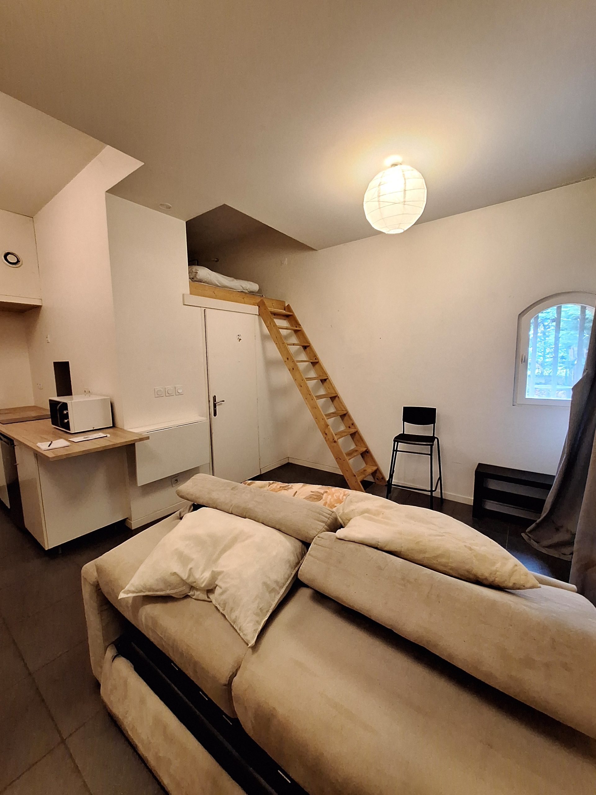 Situé a proximité du Tramway Reconnaissance Balzac. Rue de la Fraternité. Dans un immeuble sécurisé, appartement meublé au rez de chaussé sur cour intérieure. Il se compose d’une pièce de vie avec coin cuisine meublé et équipé, un coin séjour avec placard, un espace nuit en mezzanine (matelas double), une salle d’eau avec douche et toilettes non séparés. Chauffage individuel électrique. Tous les abonnements sont individuels. Libre de suite. Référence : 3155 (lot 1)