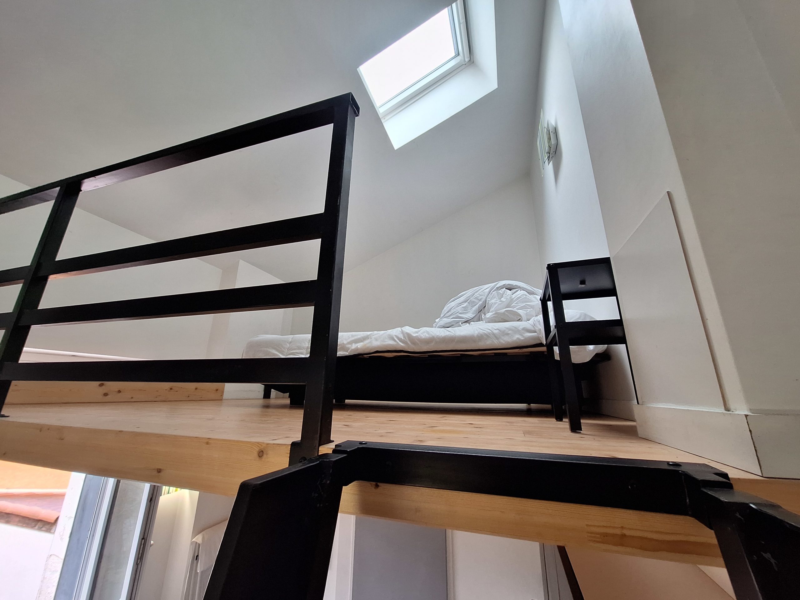 Rue des Bienvenus. Apparement meublé sur cours intérieure au 1er étage sans ascenseur. Il se compose d’une pièce de vie entièrement meublée et équipée, un espace nuit en mezzanine, une salle d’eau avec douche et toilettes non séparés. Chauffage individuel électrique. Tous les abonnements sont individuels. Libre de suite. Référence : 3161