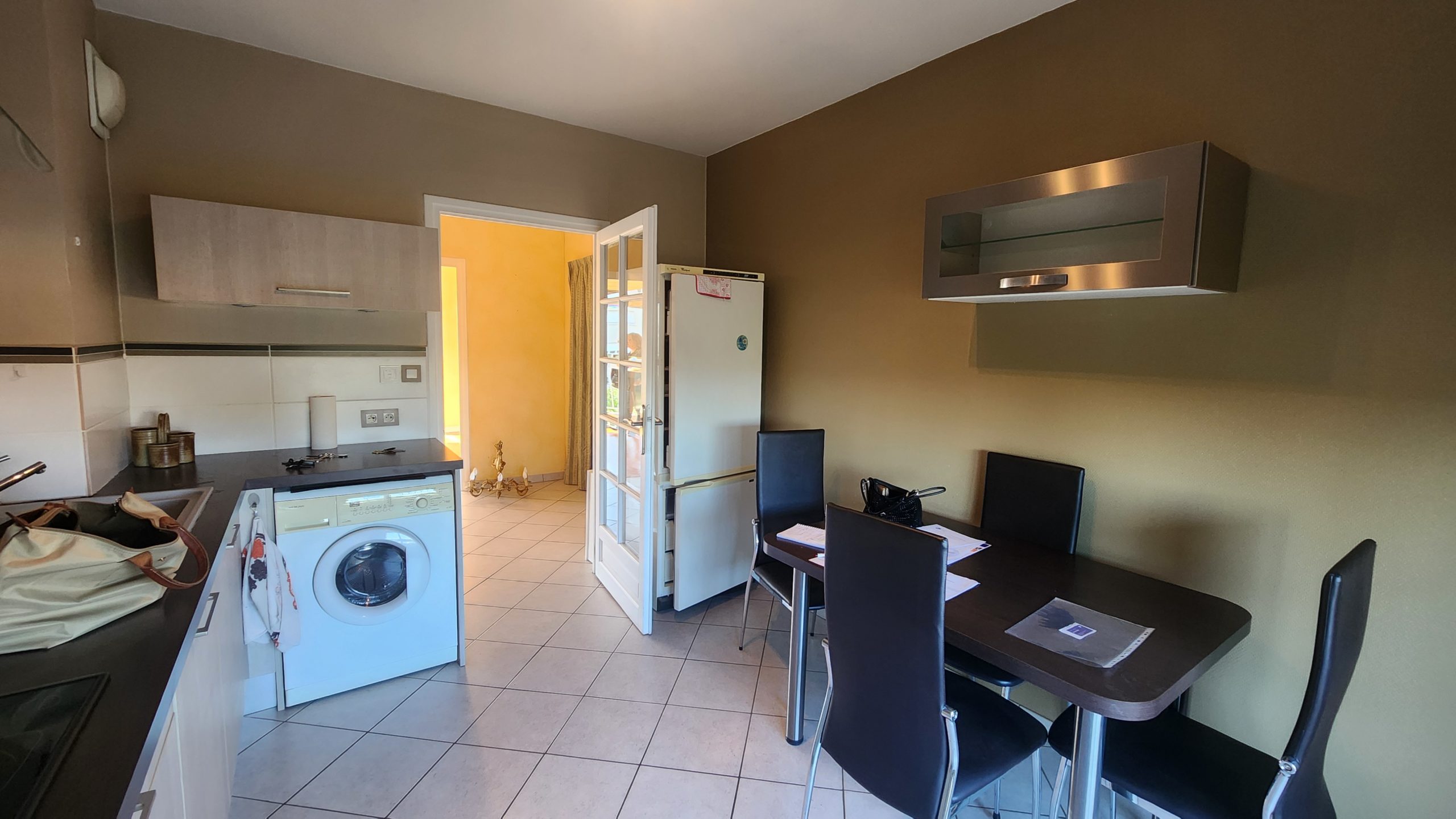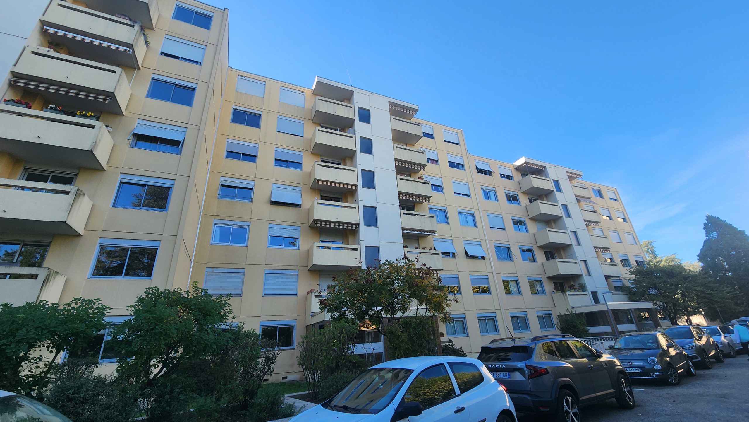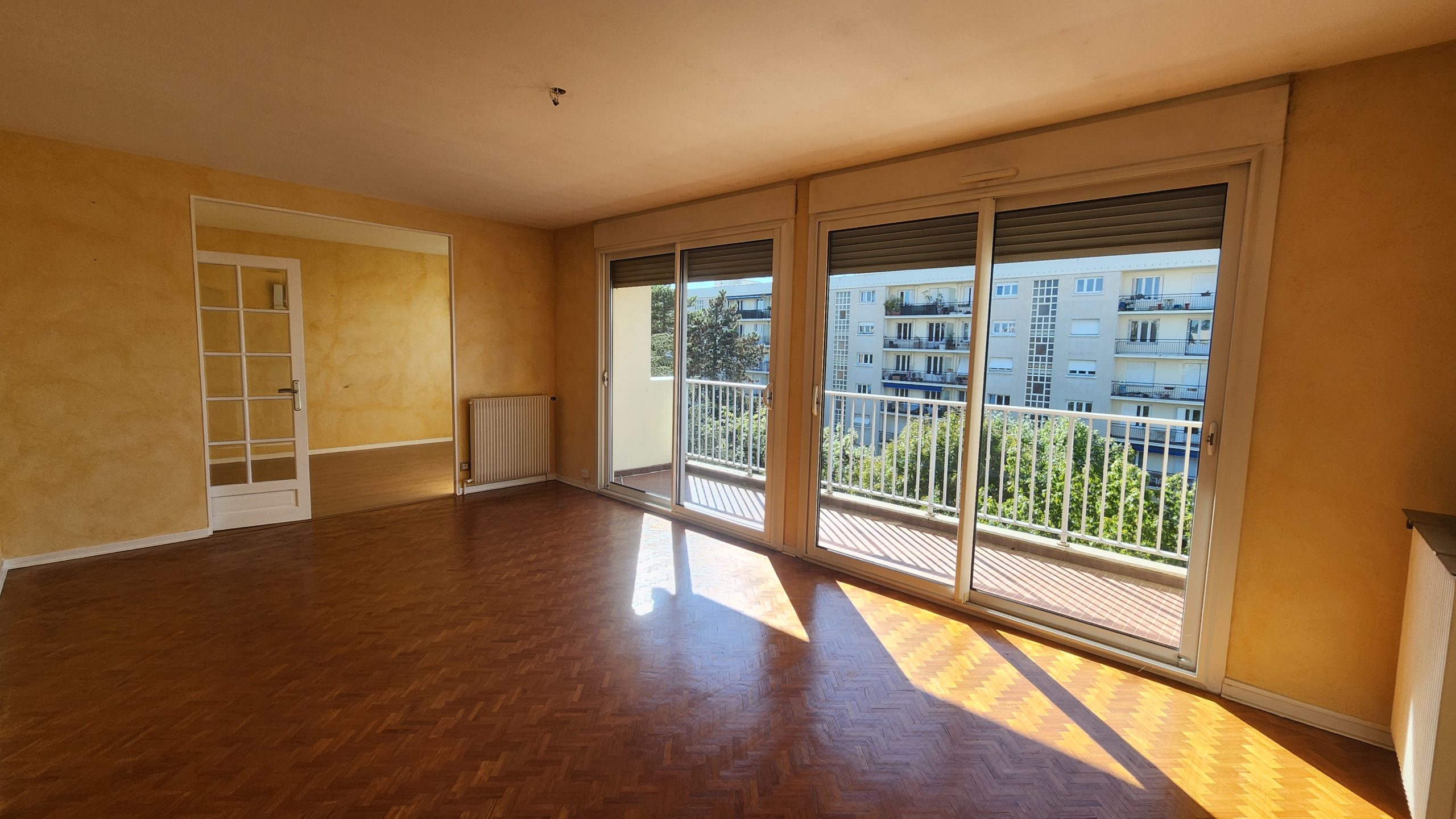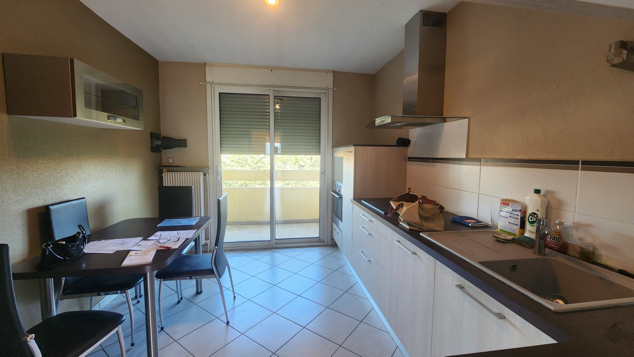 Rue Tourvielle. Appartement au 6ème et dernier étage avec ascenseur. Il se compose d’une entrée avec placard, un séjour double avec vue dégagée ouvert sur le balcon de 6,5m2, une cuisine séparée entièrement meublée et équipée de plaques de cuisson, hotte, frigo, four, machine a laver, également ouverte sur un second balcon de 4m2 environ, 2 chambres dont l’une équipée de placards, une salle d’eau avec douche, une salle de bains avec baignoire et double vasque, toilettes séparés. Un garage fermé et une cave sont également loués avec l’appartement. Résidence arborée. Chauffage collectif au gaz inclus dans les charges ainsi que l’eau chaude et l’eau froide. Libre de suite. Référence : 3110