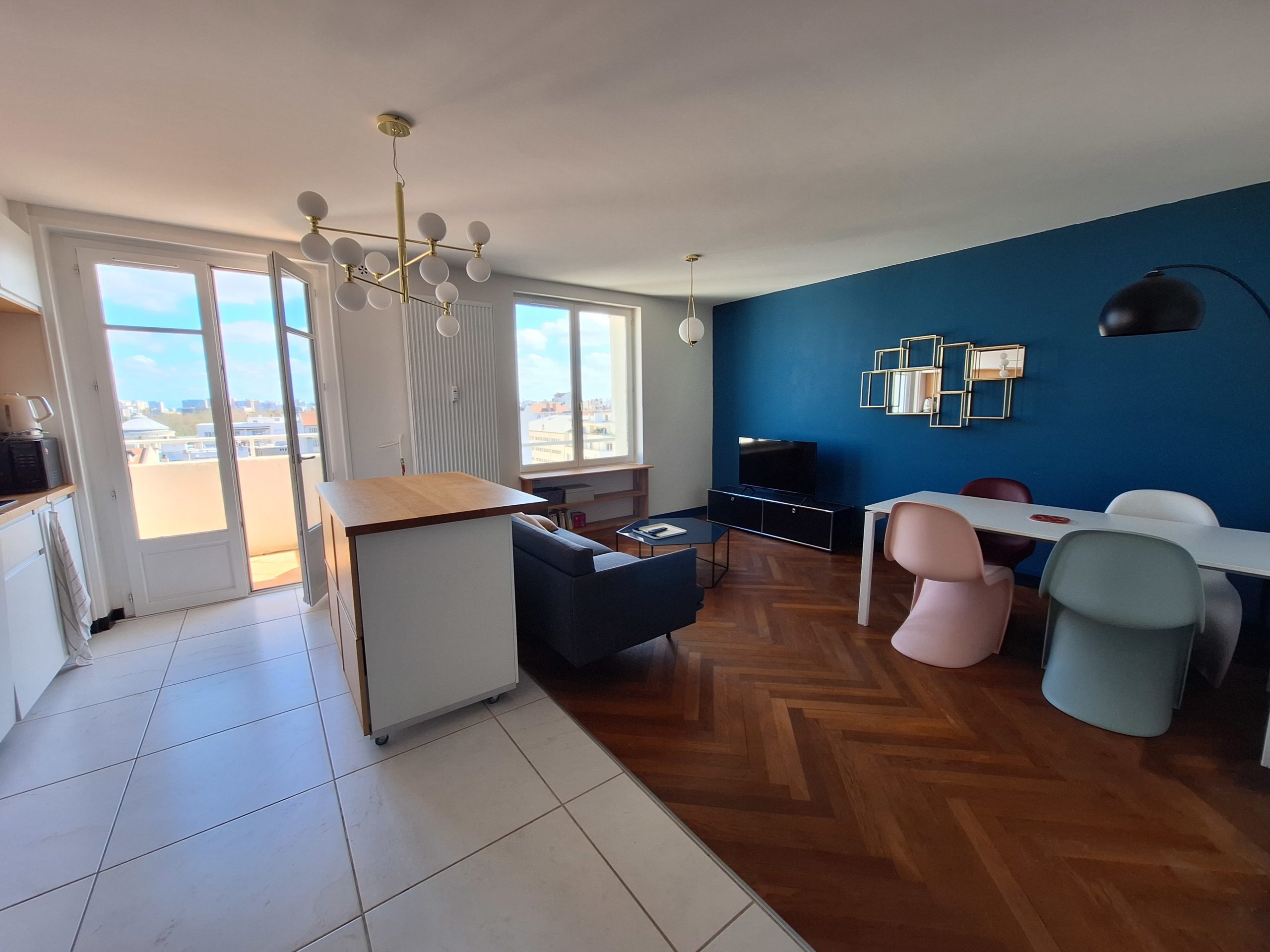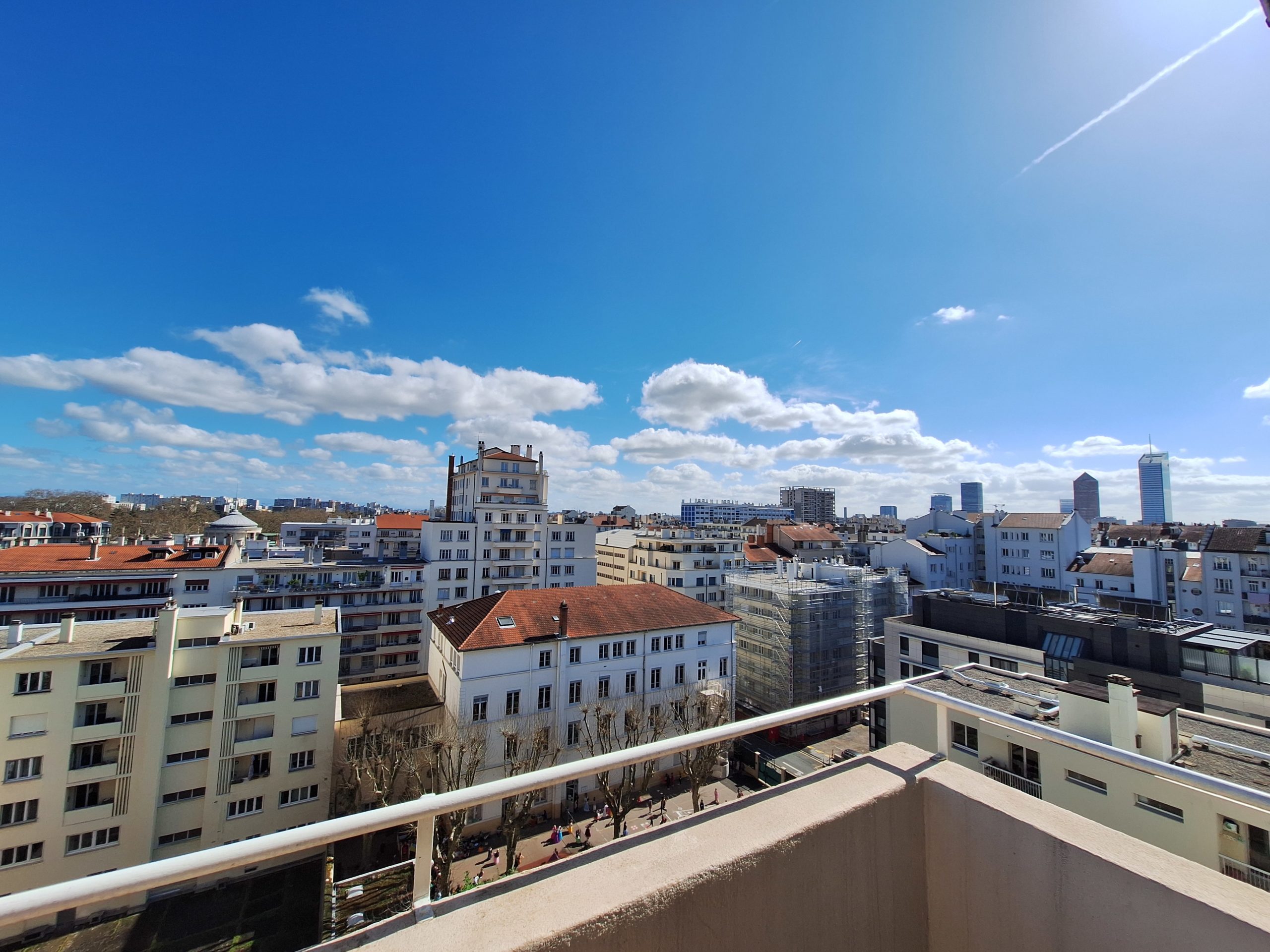 Coup de coeur ! Appartement situé au 9ème et dernier étage d’un immeuble sécurisé. A deux pas du Parc de la Tête d’Or, a 10 minutes à pied du métro Foch (ligne A) et des commerces. Appartement entièrement meublé, vous n’avez plus qu’à poser vos valises ! Il se compose d’une entrée avec placard, une pièce de vie avec cuisine américaine entièrement meublée et équipée (plaques de cuisson, hotte, lave vaisselle, frigo et four) ouverte sur l’agréable balcon et sa vue dégagée, deux chambres une avec placard et la seconde avec dressing et télévision, une salle d’eau avec douche et baignoire, toilettes séparés. Climatisation dans toutes les pièces. Chauffage et eau froide collectifs inclus dans les charges. Libre de suite. Référence : 3168