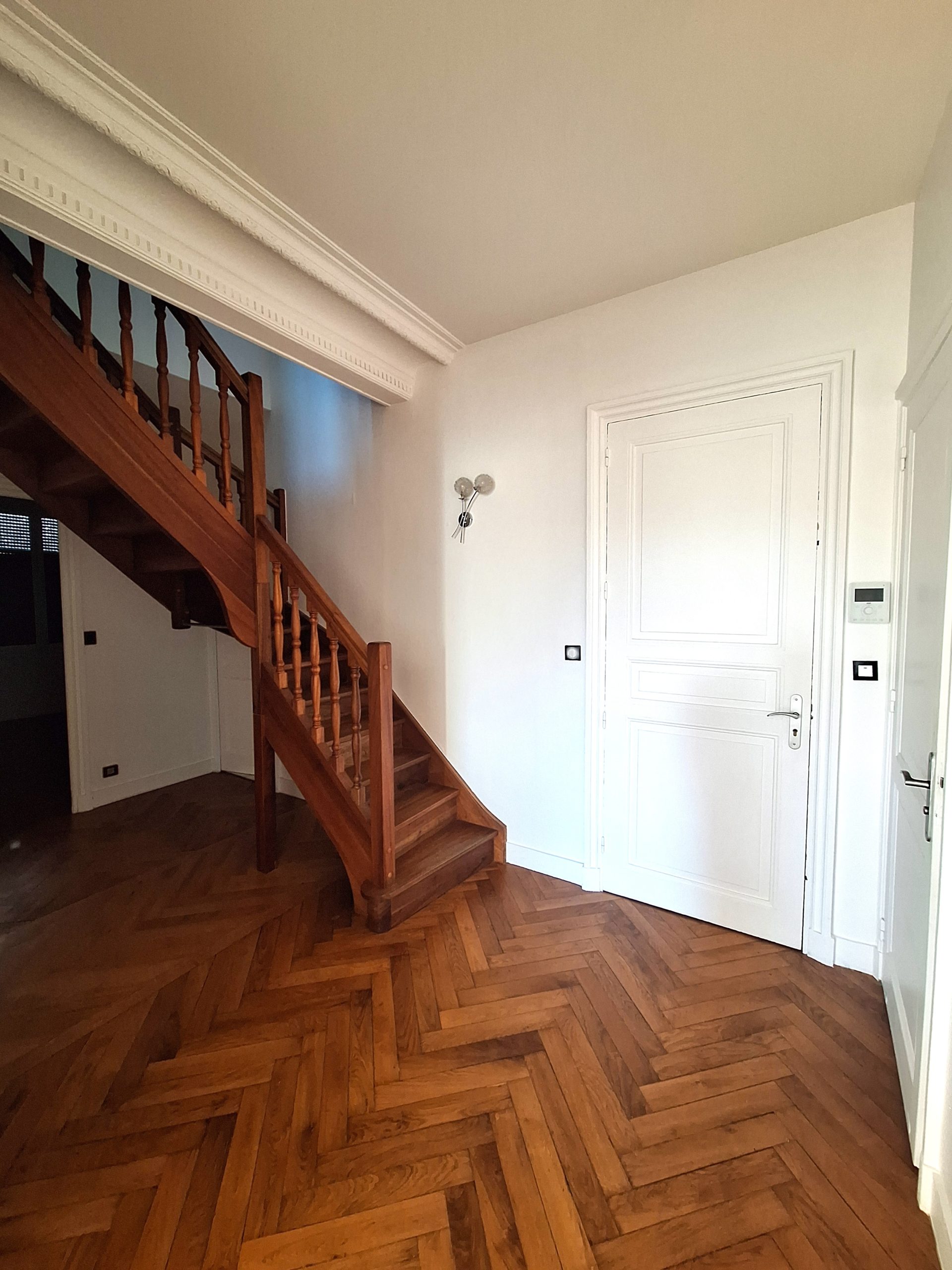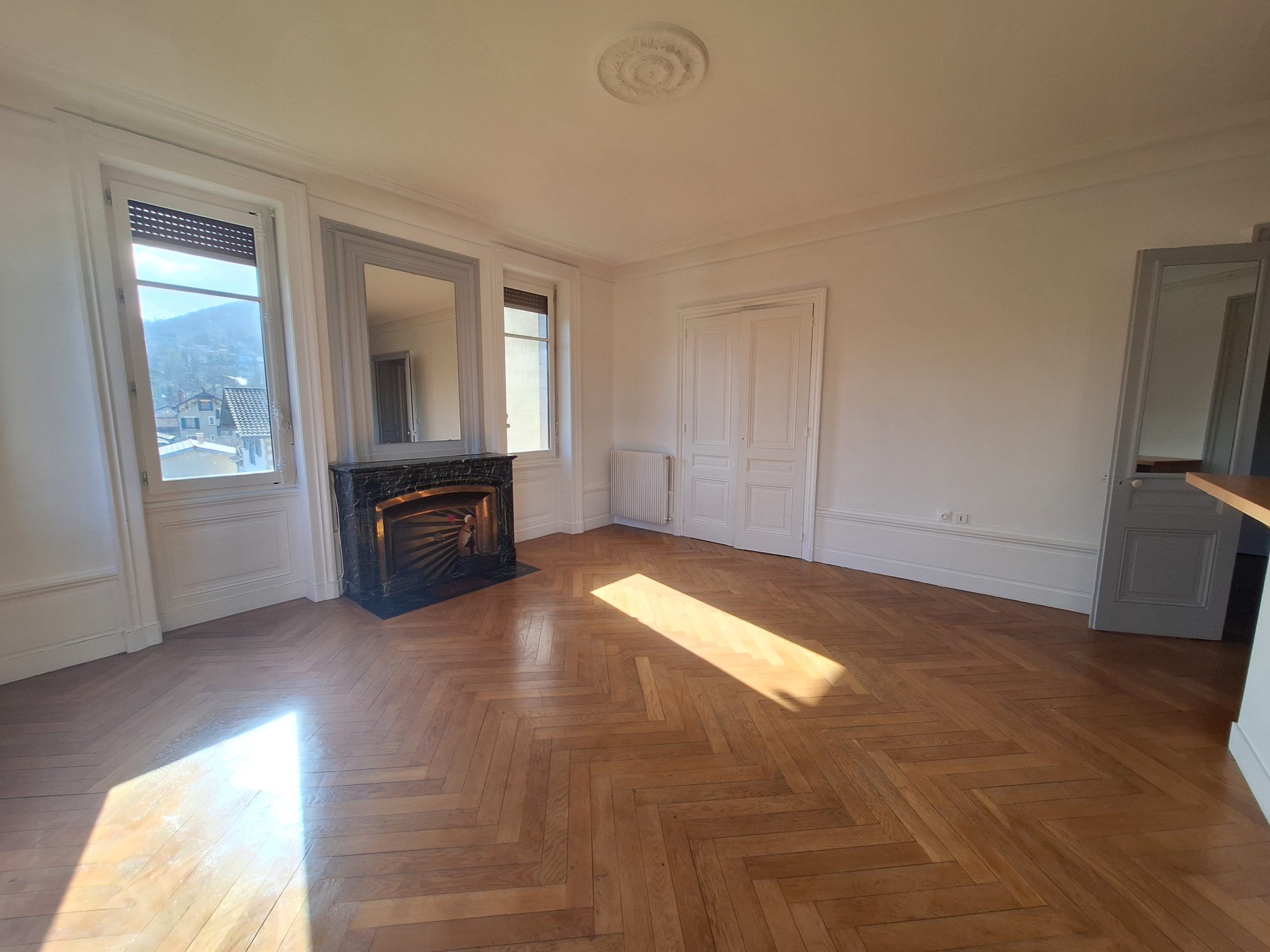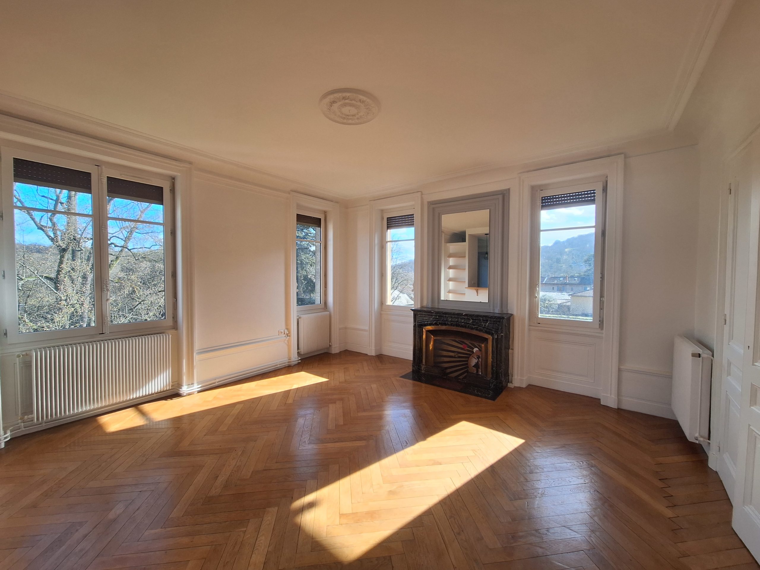 Idéalement situé dans un ancien hôtel particulier avec de très beaux espaces verts. Vous serez séduit par ce bel appartement duplex situé au 2ème étage sans ascenseur. Vous arriverez dans une vaste entrée distribuant la belle pièce de vie composée d’une cuisine américaine meublée et équipée de plaque de cuisson et la partie séjour avec cheminée décorative. Vue dégagée sur le parc arboré. A ce niveau, vous disposerez également d’une première chambre avec cheminée décorative, une salle d’eau (douche), des toilettes séparées et d’un espace rangement. A l’étage, 3 autres chambres dont l’une équipée de placard penderie, une salle de bains avec baignoire et meuble double vasque, un second toilettes séparées, placard. Bel appartement avec charme de l’ancien (cheminées décoratives, poutres apparentes dans certaines pièces) et très lumineux. Chauffage individuel au gaz. Entretien des espaces verts et eau froide collective inclus dans les charges. Plan annexé aux photos et visite virtuelle disponible. Libre de suite. Référence : 3041