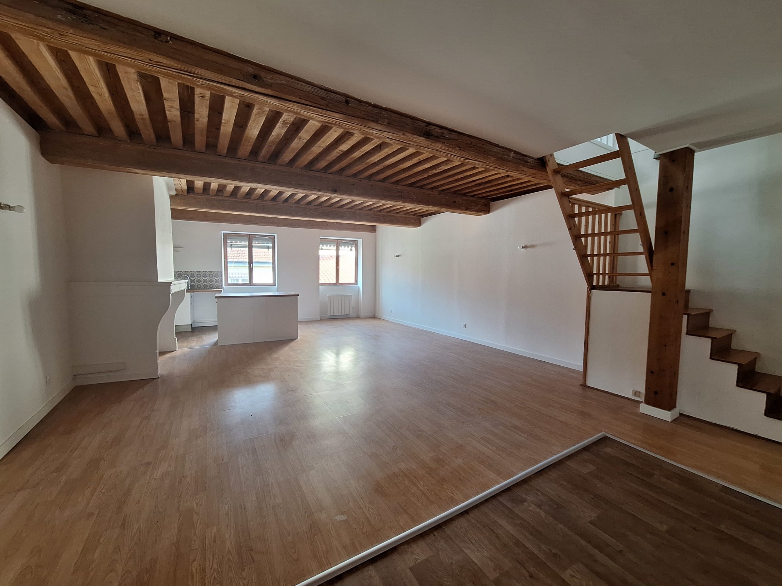 Situé Grande Rue de la Croix Rousse. Au coeur du quartier, a proximité de tous les commerces et du métro (Hénon). Apparement au 3ème étage sans ascenseur en duplex. Il se compose au premier niveau d’une belle pièce de vie avec cuisine américaine meublée et équipée d’un four, plaques de cuisson et hotte, toilettes séparés. à l’étage, une chambre, un espace pouvant faire office de bureau ou chambre d’appoint, une salle de bains avec baignoire et un second toilette non séparé. Chauffage individuel électrique. Tous les abonnements sont individuels. Libre de suite. Référence : 3166
