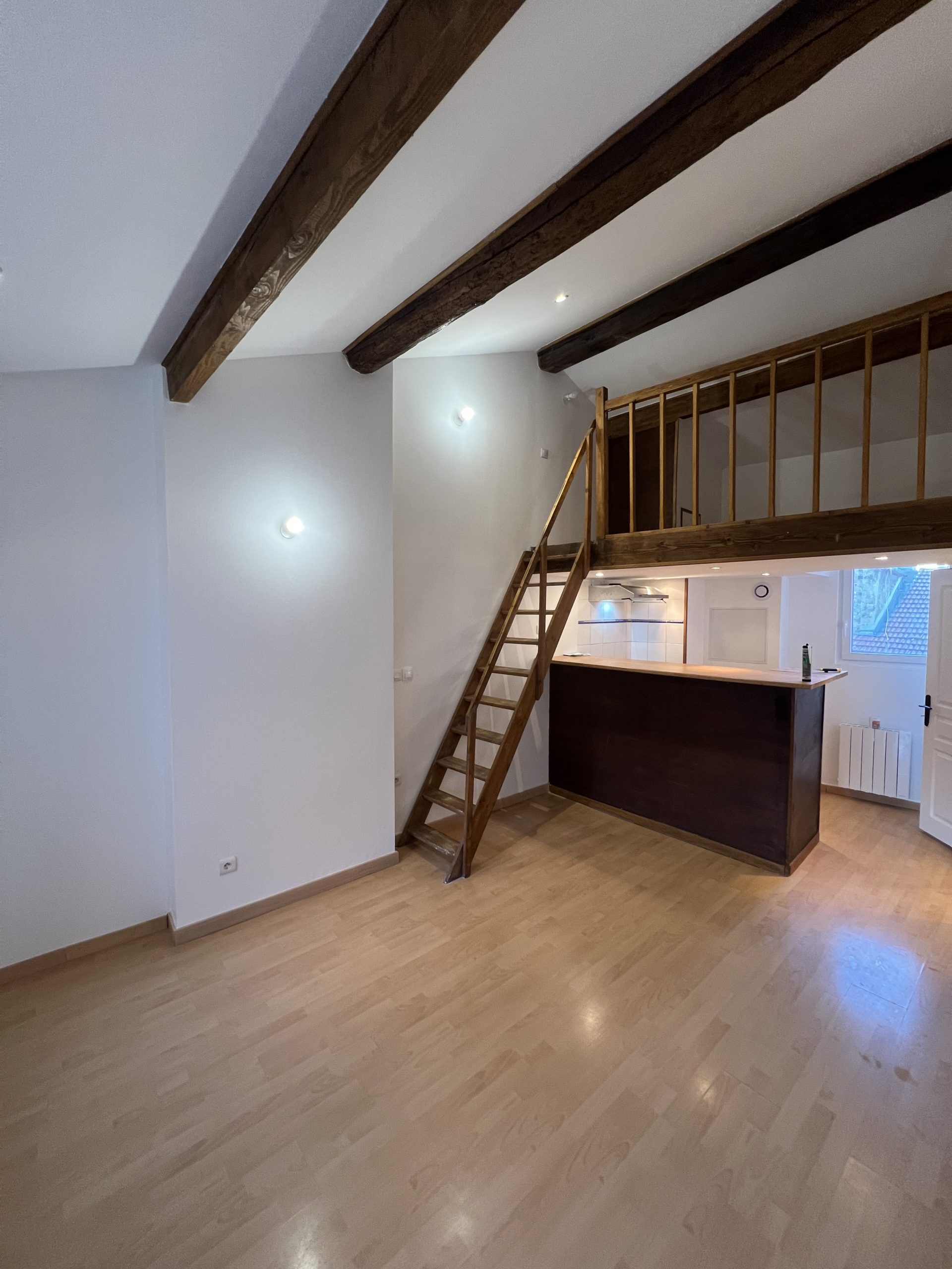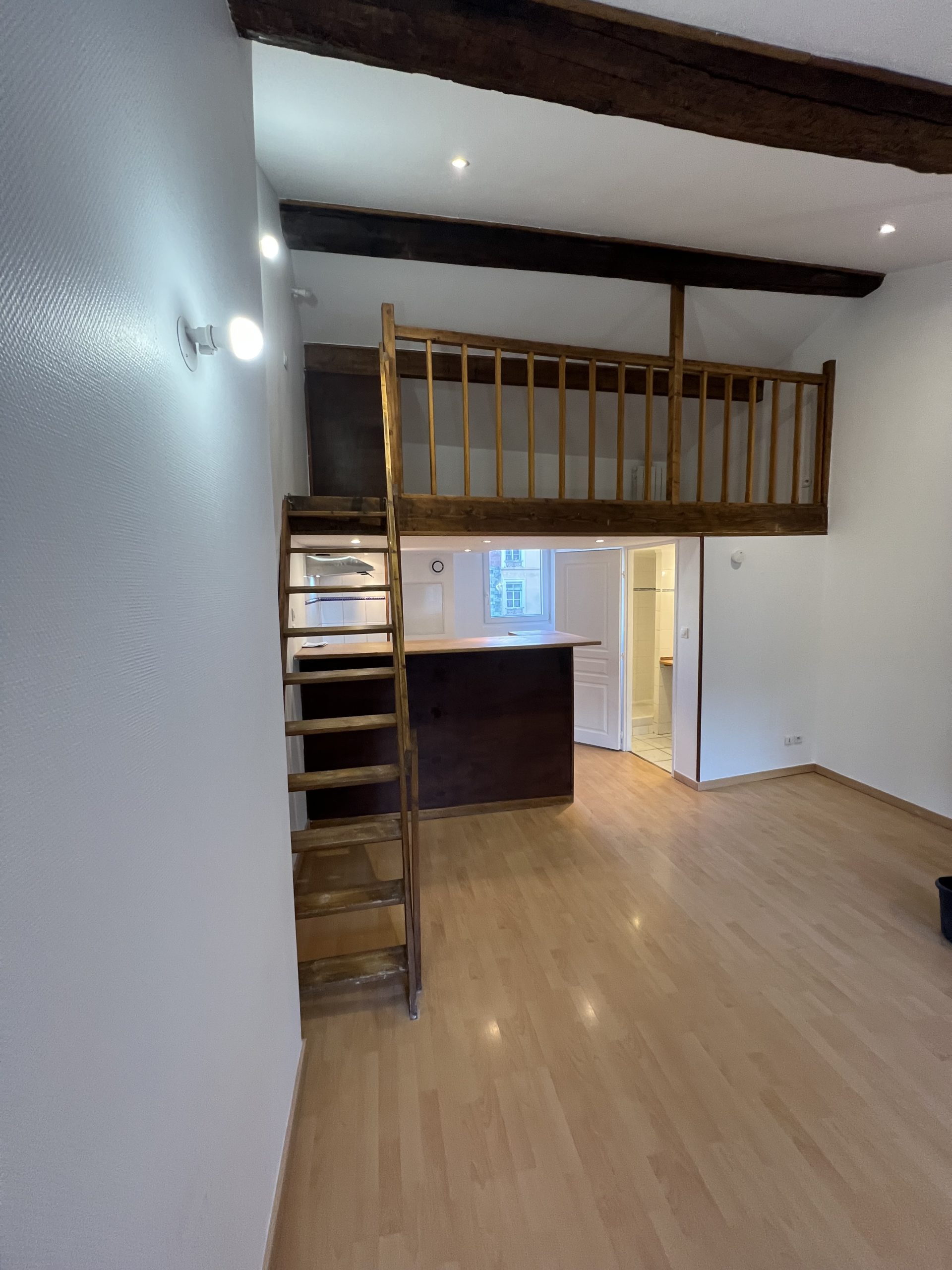 Situé à proximité immédiate de la Place de la Croix Rousse, des commerces de quartier, des transports (bus et métro). Charmant appartement duplex de 23,14m2 entièrement repeint situé sur cour. Vous accéderez à la pièce principale par une entrée et quelques marches d’escaliers. Elle est composée d’un coin cuisine non meublé et équipé simplement d’une hotte, une salle d’eau avec douche et toilettes non séparés. Le coin nuit est en mezzanine (8,67m2 de surface utile non pris en compte dans la surface du logement). Le chauffage est individuel électrique (convecteurs neufs). Tous les abonnements sont individuels. Libre de suite. Référence : 3119